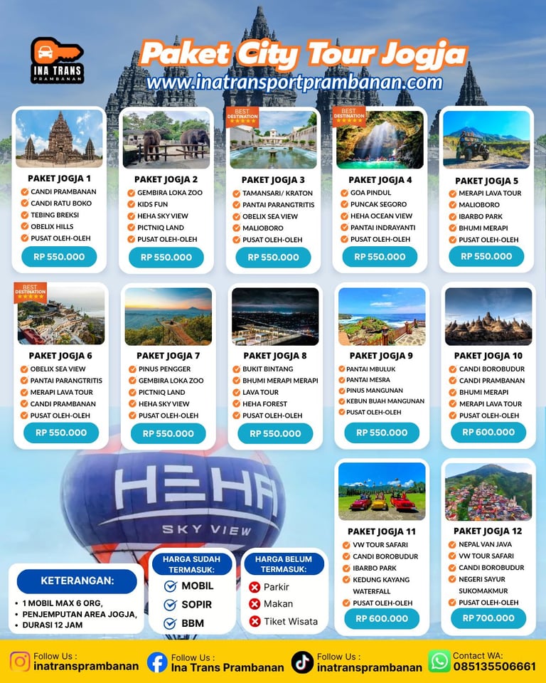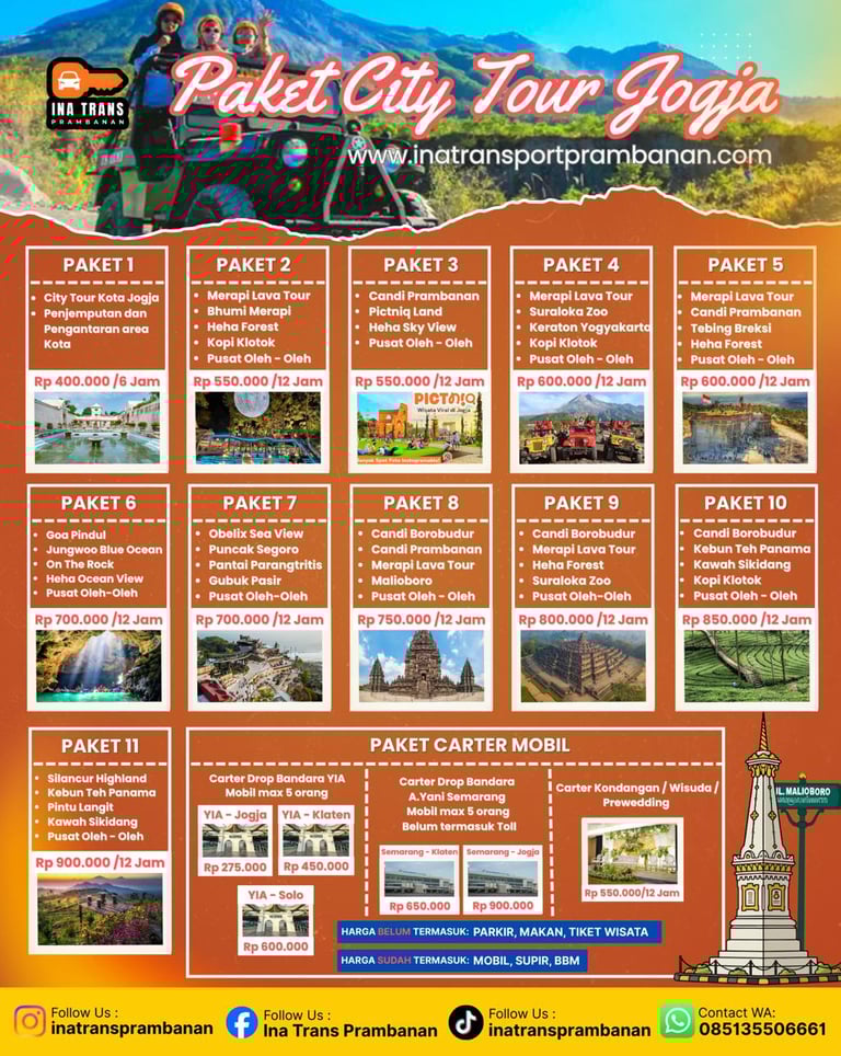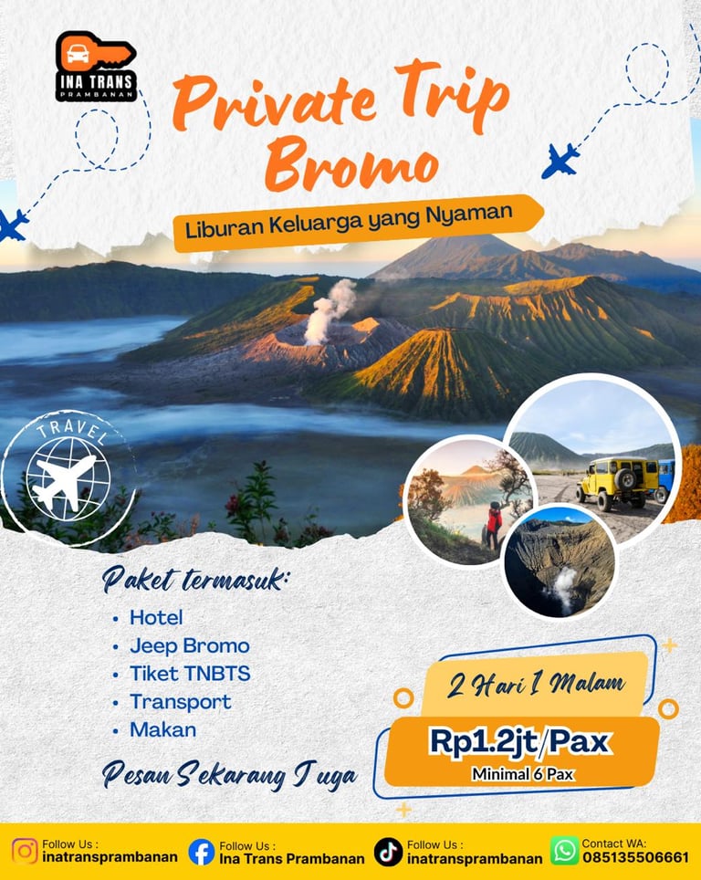 Pengalaman berlibur lebih berkesan dan felskibel dengan ptivate trip dari Ina Trans Prambanan.